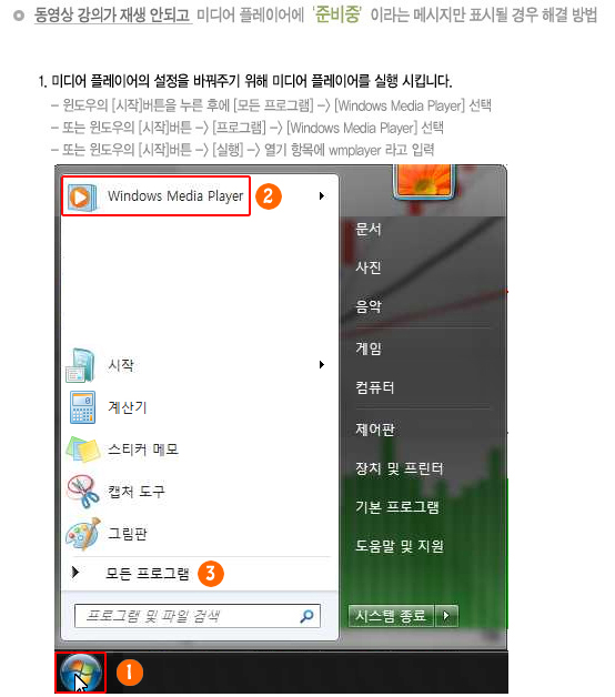 | ● 윈도우즈7 or 최신버전 일 경우(미디어플레이어버전12) |