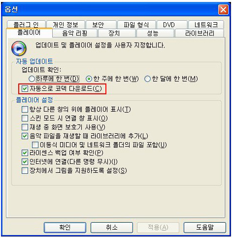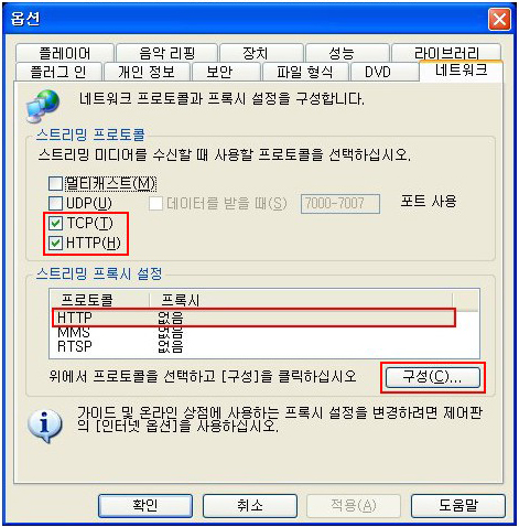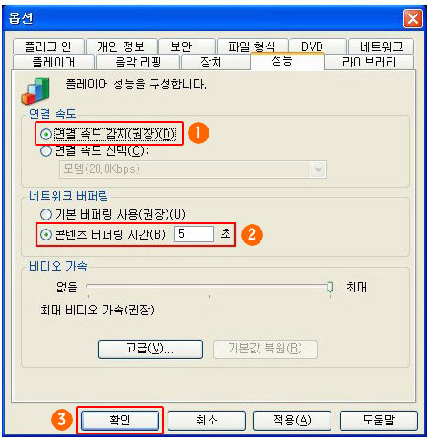 마지막으로 [확인]을 누르고 동영상이 나오는지 확인합니다. 동영상이 나오지 않으면 아래 버튼을 클릭하고 [실행]을 누릅니다.